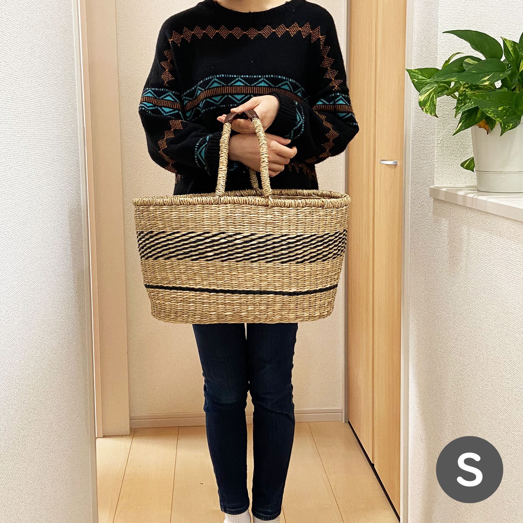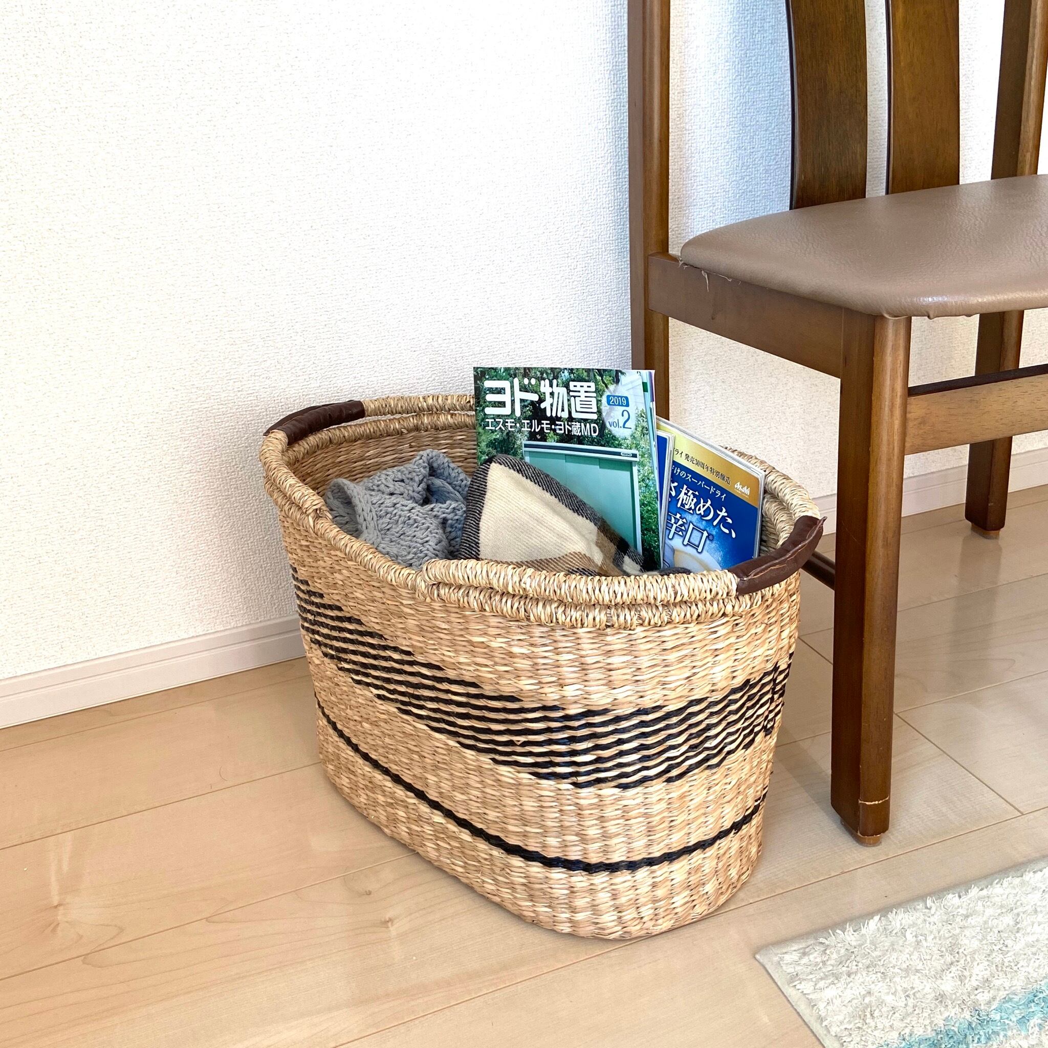 ◈ オーバルフォルムで、軽くて、自然素材 シーグラスで丁寧に編まれたバスケットはお買い物やピクニックにオシャレで使いやすい。