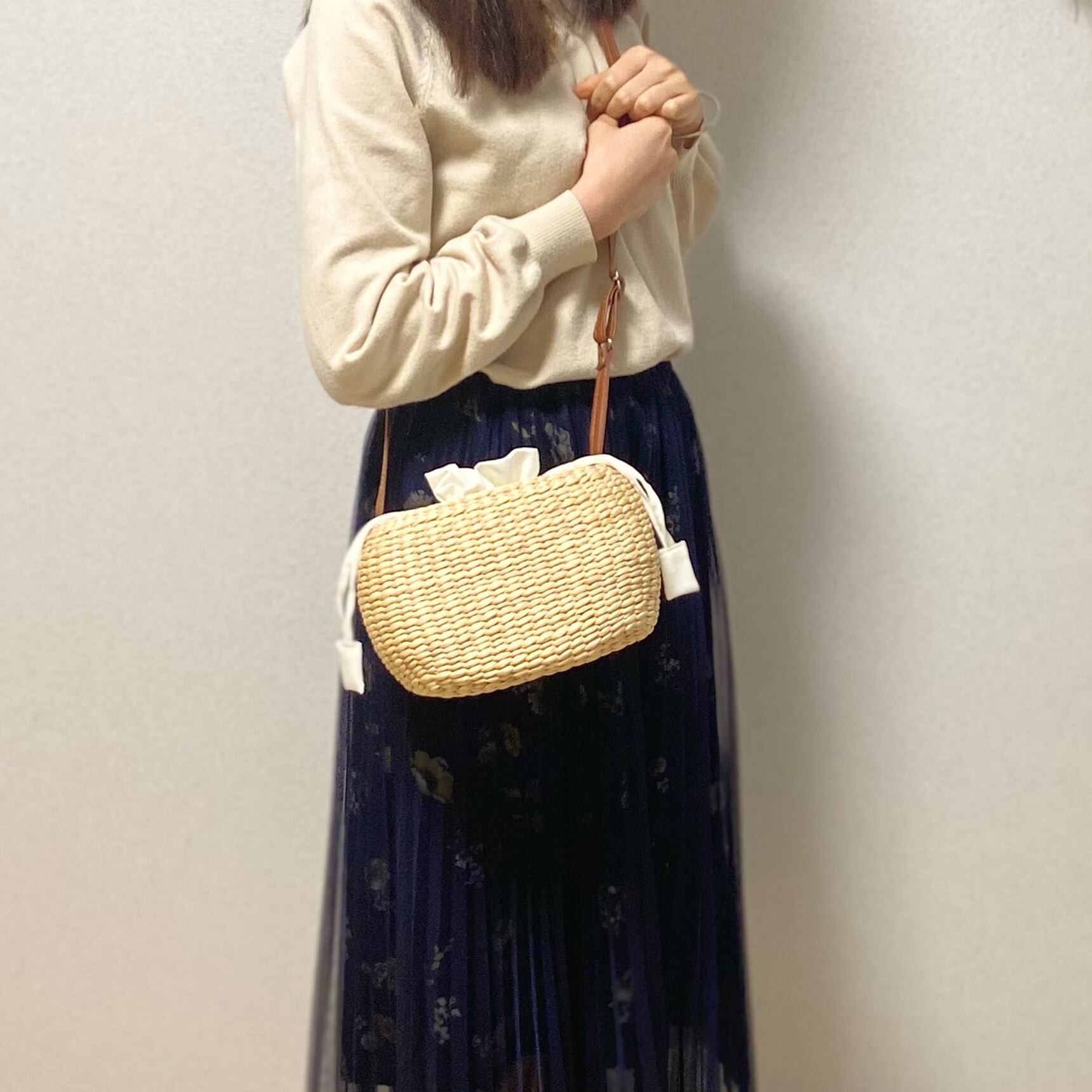 ◈ 天然素材(ウォーターヒヤシンス)で編められた小さなト-ト型のカゴバック。