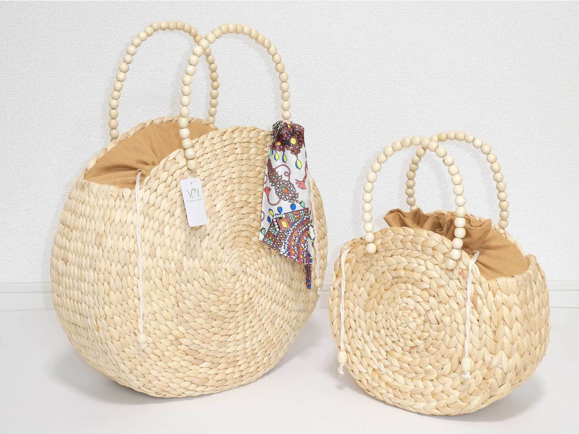 ◈天然素材(ウォーターヒヤシンス)で編められたサークルかごバック.