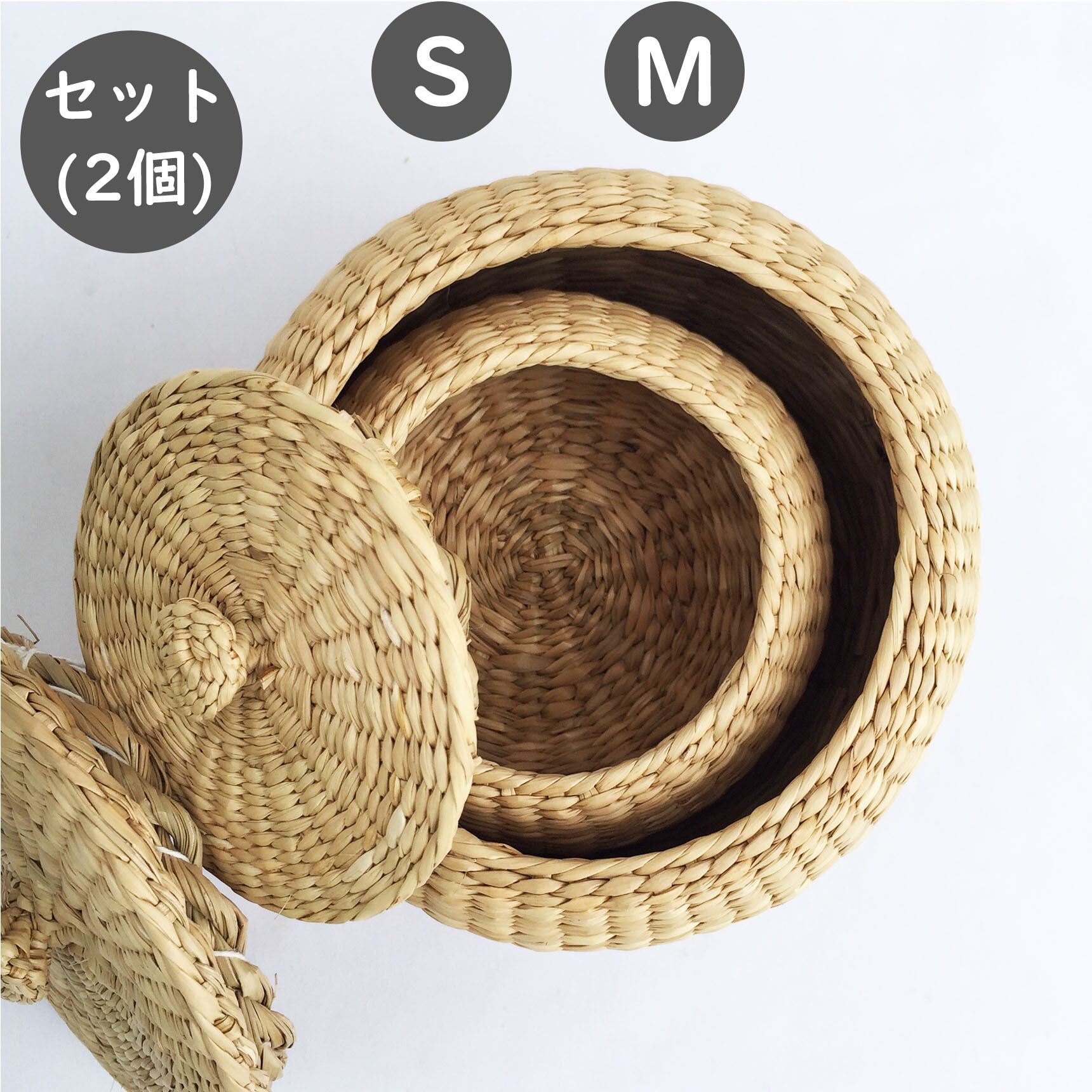 商品名:シーグラス バスケット フタ付き M,Sサイズ セット2個