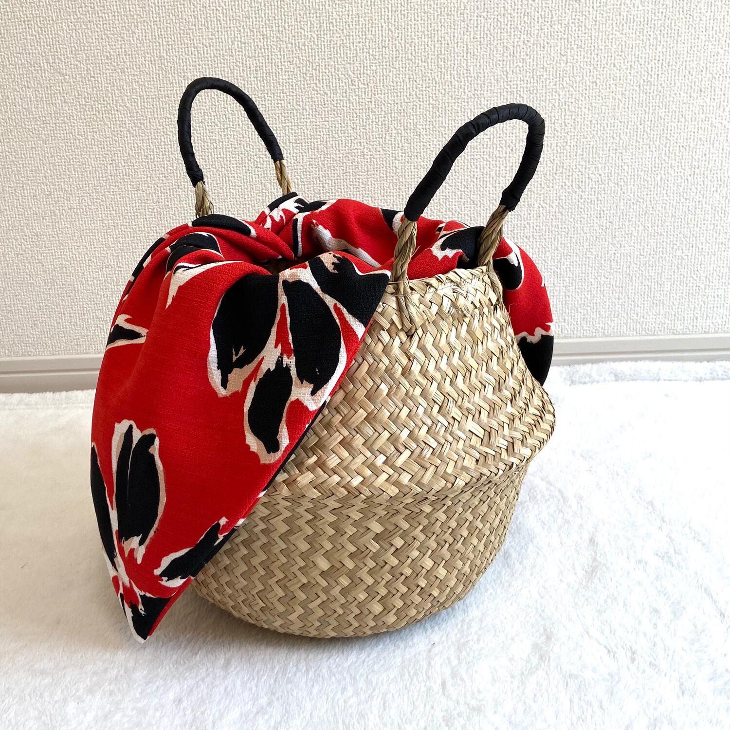 ◈バッグの口の周りに中から可愛い柄で高級な布を縫われました。布は取り外し出来ません。